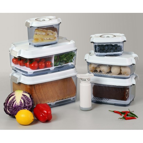 In utilizing state of the art materials and design, these vacuum canisters are the very best you can get. The canister base is one piece so cleaning any spills and washing up is a breeze because there is no groves or seals for contaminates to get into. We have designed the lid so the wide silicon seal is captured inside a lip and won’t work loose. In addition, the one-way valve in the lid is made of food-grade silicon material that features an adjustable “use-by” date indicator.